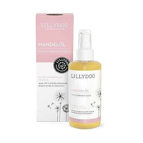 LILLYDOO Almond Oil, Unscented, 99% Cold Pressed Almond Oil with Vitamin E, Vegan, in a High Glass Jar (100ml), Dermatologically Tested
