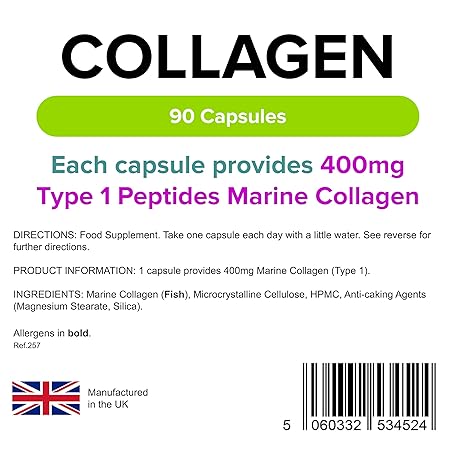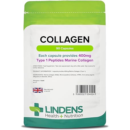 Thông tin sản phẩm Lindens - Collagen 400mg - 90 Capsules - One-A-Day - UK Made - Marine Source Hydrolysed Collagen - Supports Bones, Cartilage, Ligaments, Tendons and Connective Tissues - Letterbox Friendly