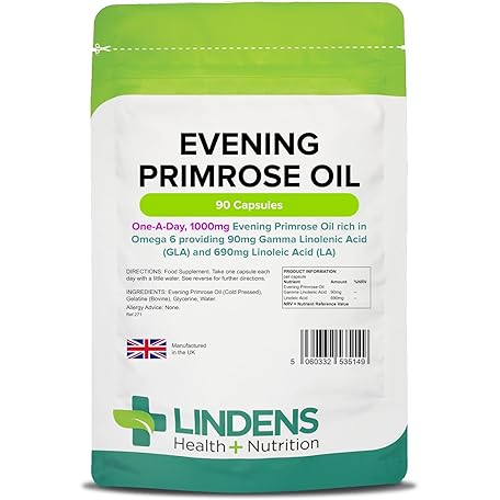 Thông tin sản phẩm Lindens Evening Primrose Oil 1000mg, 90 Capsules - 1 a Day, UK Made - Omega 6 Fatty Acids, Linoleic Acid & Gamma-Linolenic Acid - Women's Health & Skin Support - Letterbox Friendly