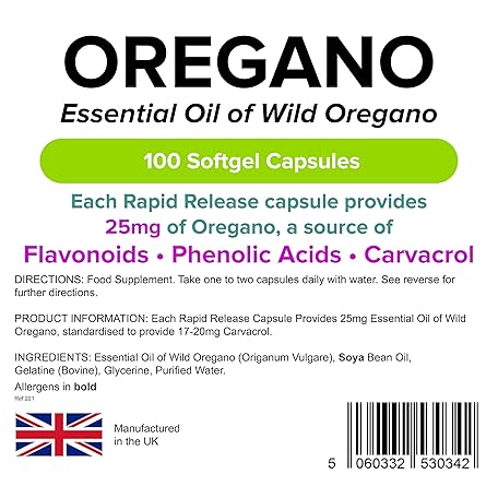 Sản phẩm Lindens Oregano Oil 25mg - 100 Capsules - UK Made - Natural Source of Phenolic Acids and Flavonoids - Origanum Vulgare - Easy Swallow & Rapid Release - 3+ Months Supply - GMP & Letterbox Friendly đang được bán với giá ưu đãi là $13.9411 tại nước Anh.