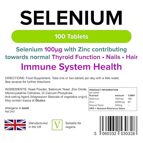 Thông tin sản phẩm Lindens Selenium 100mcg & Zinc - 100 Tablets - UK Made - Contributes to Healthy Skin, Nails & Hair, Promotes Immunity & Thyroid Function - Vegan Friendly, GMP & Letterbox Friendly