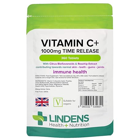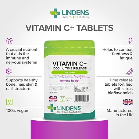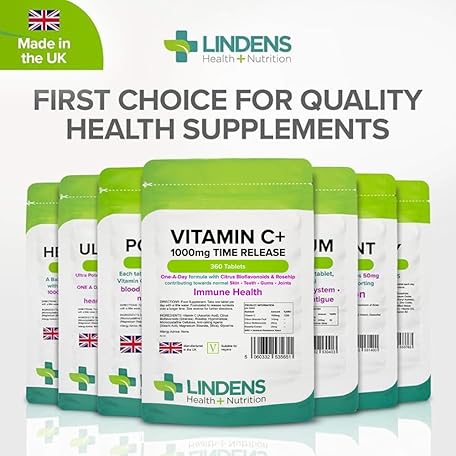 Sản phẩm Lindens - Vitamin C+ 1000mg Time Release, 360 Tablets - 1 a Day, UK Made - Skin, Teeth, Joints and Immune Health, Combats Tiredness and Fatigue - Vegan đang được bán với giá ưu đãi là $26.2472 tại nước Anh.