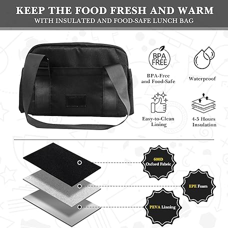 Thông tin sản phẩm Linkidea Lunch Box for Adult, Portable Lunch Bag with Hand Strap, Large Capacity Insulated Compatible with Crock Pot, DUPASU, Aotto, LUNCHEAZE Electric Heated Lunch Box(Black)