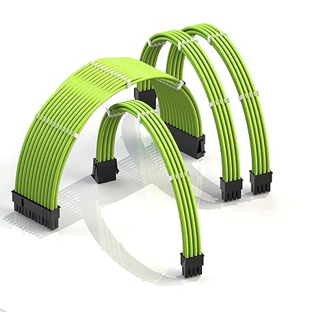 LINKUP - AVA 50cm PSU Cable Extension Sleeved Custom Mod GPU PC Braided w/Comb Kit | 1 x 24 P (20+4) | 1 x 8 P (4+4) CPU | 2 x 8 P (6+2) GPU set | 500mm - Green