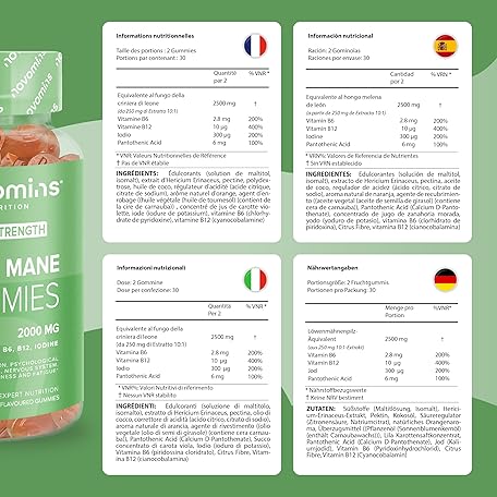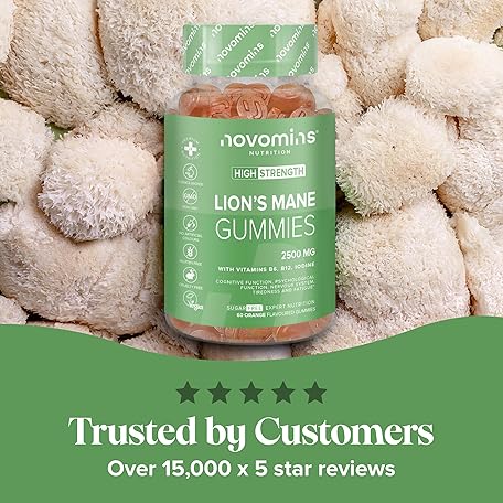 Thông tin sản phẩm Lions Mane Gummies - 2500mg with Vitamin B6, B12 for Mental Performance - High-Strength Alternative to Lion's Mane Powder - Lion's Mane Mushroom Gummies - Lions Mane Supplement for Adults - Novomins