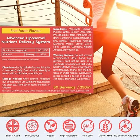 Sản phẩm Liposomal Vitamin C 1000mg - (250ml - 50 Servings) High Strength Liquid Liposomal Vitamin C Supplement - Supports Immunity, Skin, Brain, Joints, Energy - Vegan, Fruit Fusion đang được bán với giá ưu đãi là $47.8292 tại nước Anh.