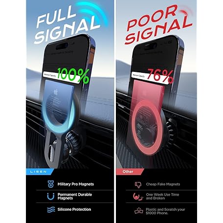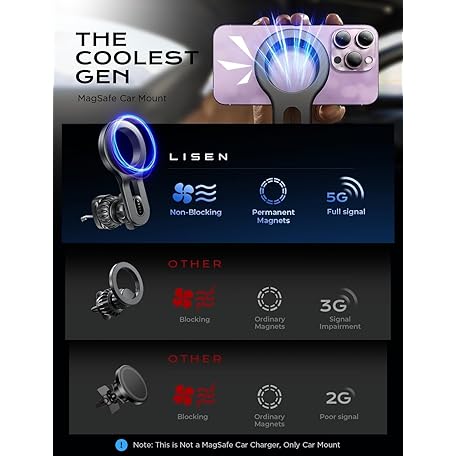 LISEN Mag Safedock Car Holder for iPhone17 Pro Max [Easily Install] Magsafe Car Mount Magsafe Phone Holder [Super Stable] Fit for iPhone 17 16 15 14 13 12 Pro/Max/Plus/Mini & MagSafe Case