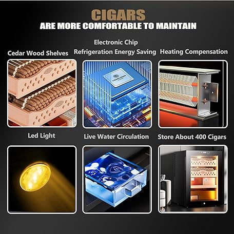 Lissontine Electric Humidor Thermostatic Cooling Humidor Cabinet with Smart Humidity & Temp Control, Spanish Cedar Wood Shelves, for Men 70L-400Counts