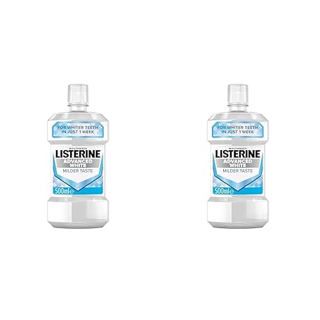 Listerine Advanced White Milder Taste Mouthwash 500ml (Pack of 2)