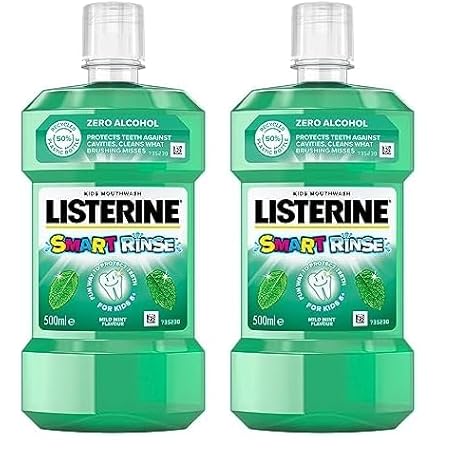 Listerine Smart Rinse Mild Mint Mouthwash, Multi, 500 ml (Pack of 2)