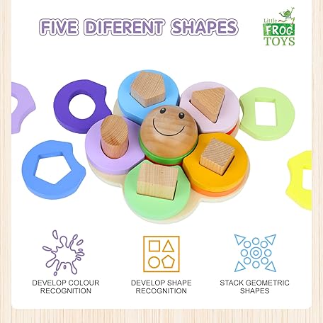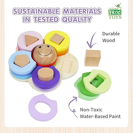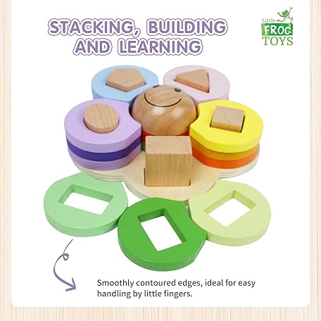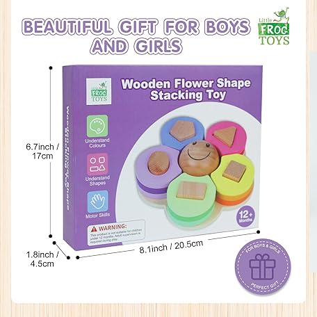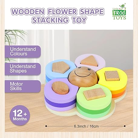 Thông tin sản phẩm Little Frog Flower Shape Wooden Stacking Puzzle Toy, Montessori Toys for 1+ Year Old Boys & Girls, Wooden Shape Sorter, Early Development & Activity Toys, Educational Toys For 1+ Year Old