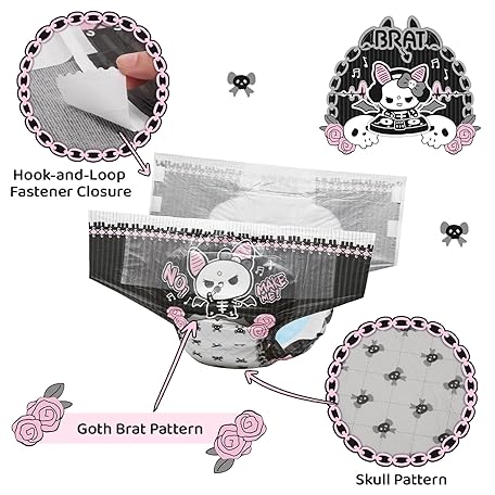 Sản phẩm Littleforbig Ultra Absorbent 7000 mL Adult Printed Diaper 2 Pieces - Goth Brat (X-Large 48"-56") đang được bán với giá ưu đãi là $23.9909 tại nước Anh.