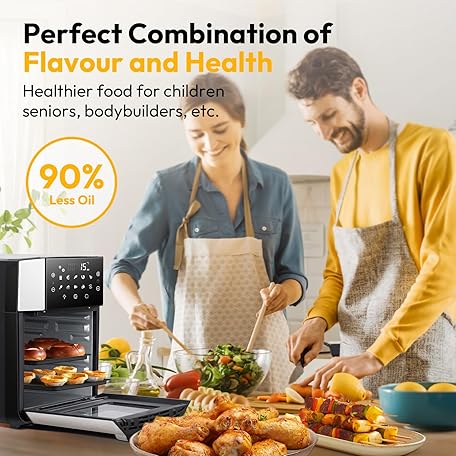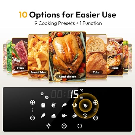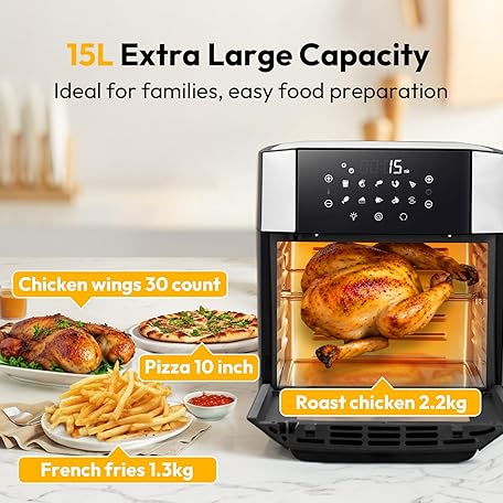 Thông tin sản phẩm LLIVEKIT 15L Air Fryers Oven with Rotisserie, 90% Less Oil Airfryer, 10-In-1 LED Touch Screen, 7 Accessories 1 Cookbook, Mini Oven with Fry, Bake, Grill, Roast, Stainless Steel, 1800W