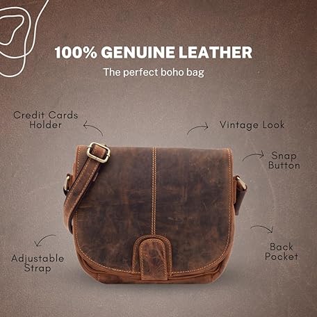 Thông tin sản phẩm Lloyd Baker - JALNA Distress Genuine Leather Crossbody Bag, Vintage Bohemian Design, Multiple Compartment Card Slots Adjustable Strap Boho Style Shoulder Bag