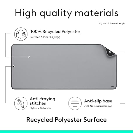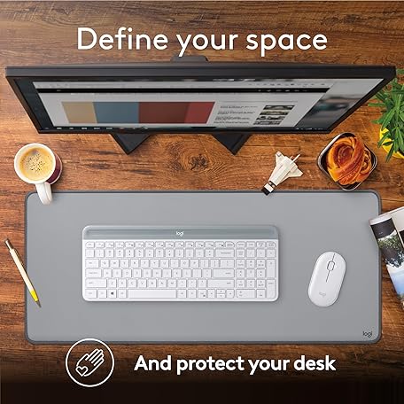 Thông tin sản phẩm Logitech Desk Mat - Studio Series, Multifunctional Large Desk Pad, Extended Mouse Mat, Office Desk Protector with Anti-slip Base, Spill-resistant Durable Design - Grey