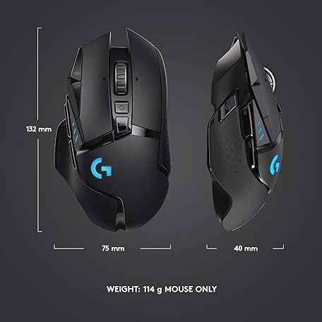 Thông tin sản phẩm Logitech G502 LIGHTSPEED Wireless Gaming Mouse, HERO 25K Sensor, 25,600 DPI, RGB, Adjustable Weights, 11 Programmable Buttons, Long Battery Life, On-Board Memory, PC / Mac