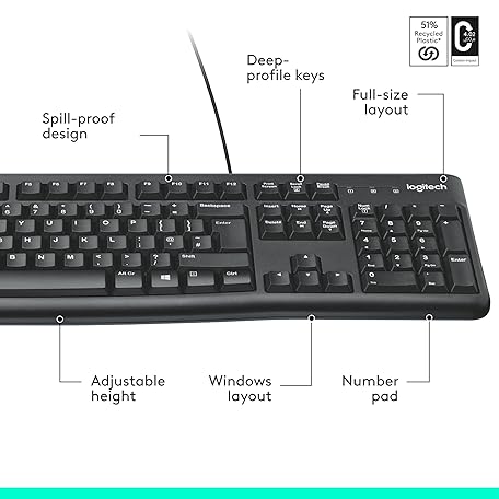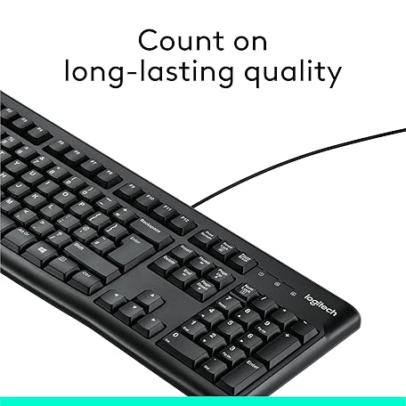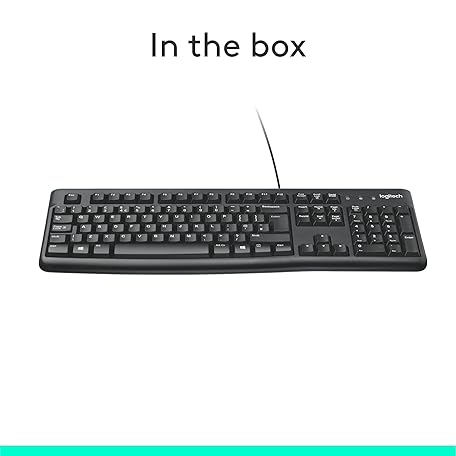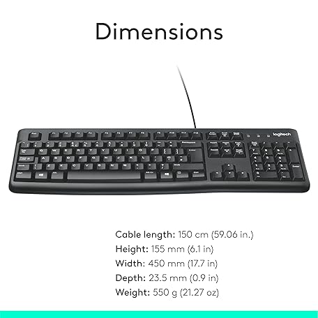 Thông tin sản phẩm Logitech K120 Wired Keyboard for Windows, USB Plug-and-Play, Full-Size, Spill-Resistant, Curved Space Bar, Compatible with PC, Laptop, QWERTY UK English Layout - Black