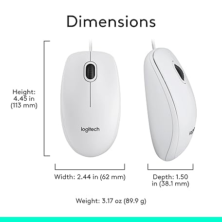 Thông tin sản phẩm Logitech M100 Wired USB Mouse, 3-Buttons,1000 DPI Optical Tracking, Ambidextrous, Compatible with PC, Mac, Laptop - White