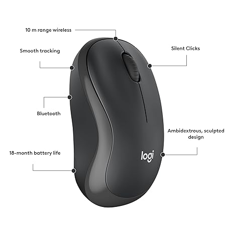 Thông tin sản phẩm Logitech M240 Silent Bluetooth Mouse, Wireless, Compact, Portable, Smooth Tracking, 18-Month Battery, for Windows, macOS, ChromeOS, Compatible with PC, Mac, Laptop, Tablets - Graphite