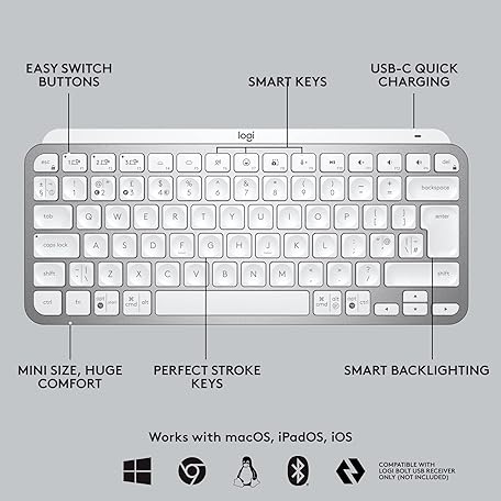 Thông tin sản phẩm Logitech MX Keys Mini Keyboard and Lift Vertical Ergonomic Mouse Combo - Wireless, Backlit Keys, Bluetooth or Logi Bolt USB receiver, Quiet, Windows/macOS/iPadOS, Laptop, PC, QWERTY UK - White