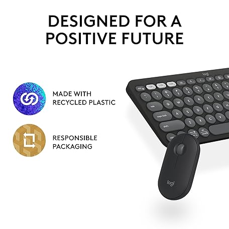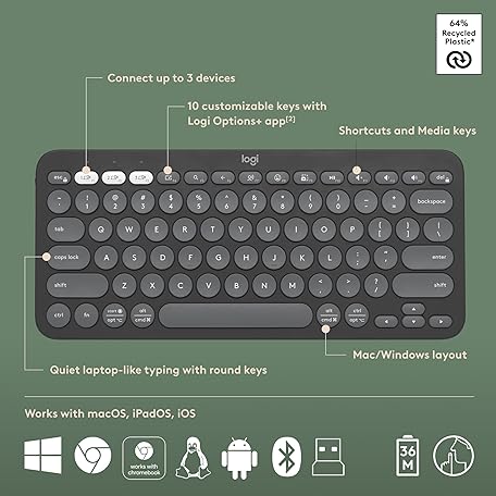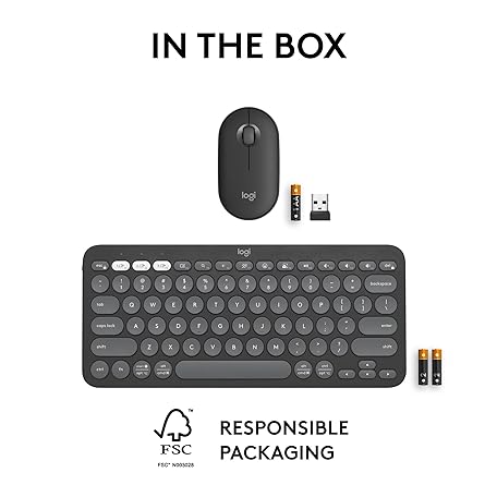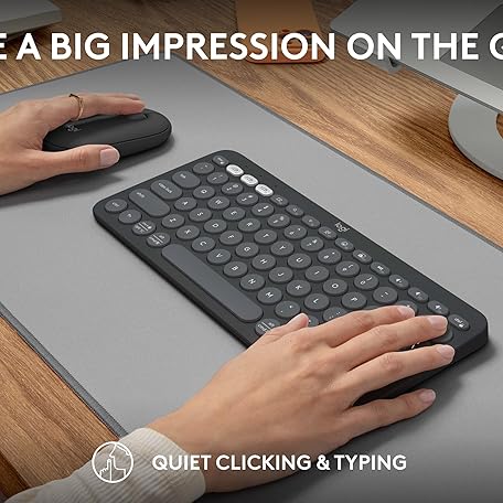 Thông tin sản phẩm Logitech Pebble Keys 2 K380s, Multi-Device Bluetooth Wireless Keyboard + Pebble Mouse 2 M350s Slim Bluetooth Wireless Mouse, QWERTY UK - Graphite