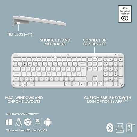 Sản phẩm Logitech Signature Slim K950 Wireless Keyboard, Sleek Design, Switch Typing Between Devices, Quiet Typing, Bluetooth, Multi-OS, Windows, Mac, Chrome, QWERTY UK Layout, White đang được bán với giá ưu đãi là $101.8169 tại nước Anh.