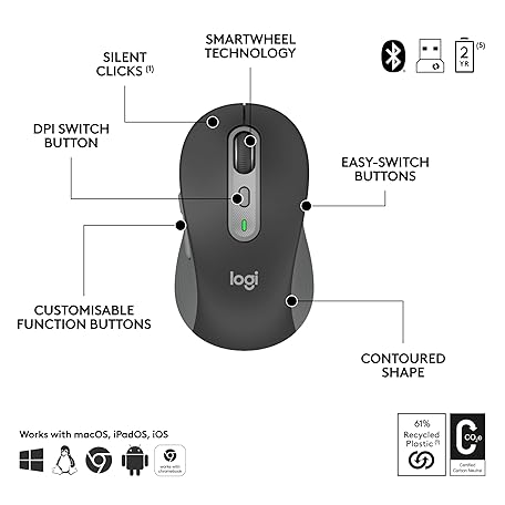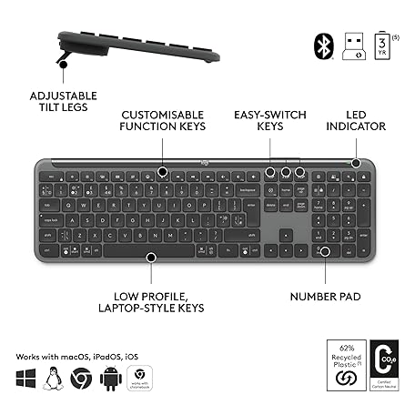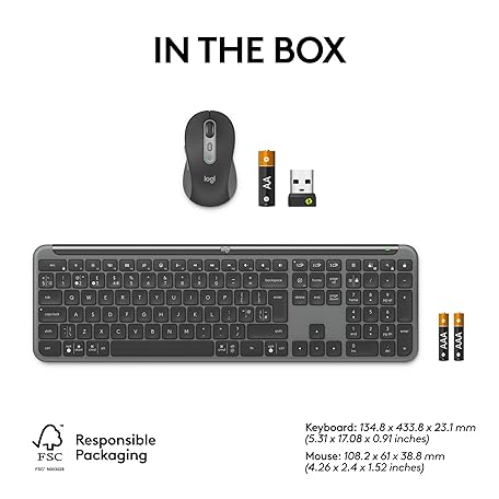 Thông tin sản phẩm Logitech Signature Slim MK950 for Business Wireless Keyboard and Mouse Combo, Quiet Typing, Secure Receiver, Bluetooth, Globally Certified, Windows/Mac/Chrome/Linux, QWERTY UK Layout, Graphite
