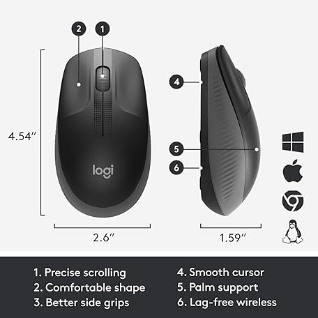 Thông tin sản phẩm Logitech Wireless Mouse M190, Full Size Ambidextrous Curve Design, 18-Month Battery with Power Saving Mode, USB Receiver, Precise Cursor Control + Scrolling, Wide Scroll Wheel, Scooped Buttons - Black