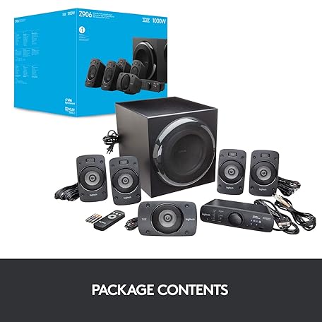 Thông tin sản phẩm Logitech Z906 5.1 Surround Sound Speaker System, THX, Dolby & DTS Certified, 1000 Watts Peak Power, Multi -Device, Multiple Audio Inputs, UK Plug, PC/PS4/Xbox/Music Player/TV/Smartphone/Tablet
