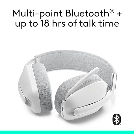 Logitech Zone Vibe 100 Lightweight Wireless Over-Ear Headphones with Noise-Cancelling Microphone, Advanced Multipoint Bluetooth Headset, Works with Teams, Google Meet, Zoom, Mac/PC - White