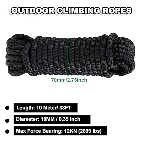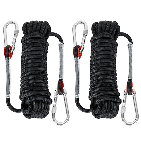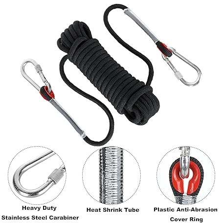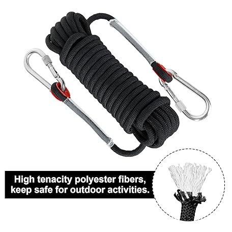 Thông tin sản phẩm 2Pcs 10mm x 10M Black Rope, Multifunctional Nylon Ropes with Carabiners, Hanging Rope String for Outdoor & Indoor Bundling, Clothesline, Camping, Hiking, Fishing
