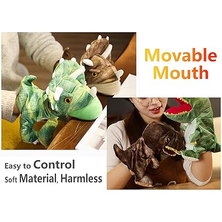 Thông tin sản phẩm LOMTRATS Dinosaurs Hand Puppets for kids,Toddler Includes Triceratops and Tyrannosaurus Rex with Movable Open Mouths, Perfect for Storytelling,Teaching,Preschool,Birthday Gifts