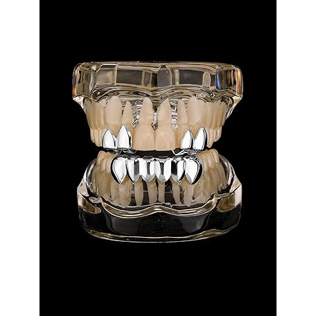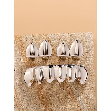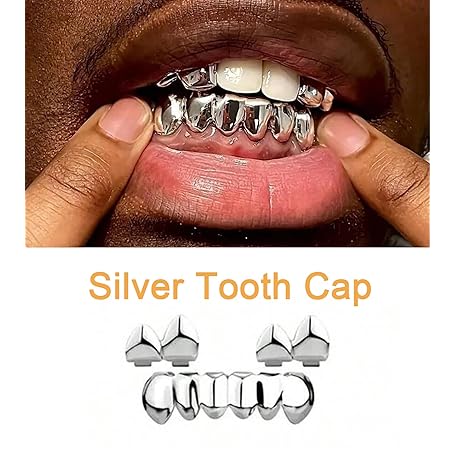 Longita 1 Set Silver Teeth Grillz for Women Grills for Your Teeth Men Silver Tooth Cap Grillz for Women Golden Tooth Jewelry Mouth Grills Hip Hop Rapper Outfits Custom Accessory Halloween Party