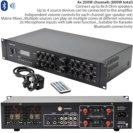 Sản phẩm Loops 800W Bluetooth Sound System 8x 200W Black Wall Speaker 4 Zone Matrix Amplifier đang được bán với giá ưu đãi là $886.2463 tại nước Anh.