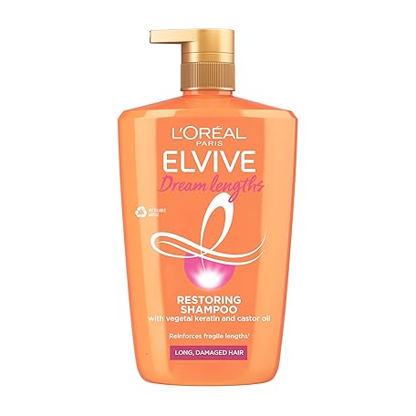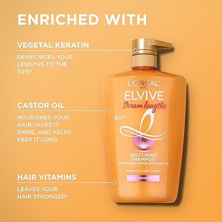 Thông tin sản phẩm L’Oréal Paris Elvive Dream Lengths Shampoo XL for Long Damaged Hair, Nourishing & Strengthening to Prevent Hair Breakage, Enriched with Castor Oil, 1L