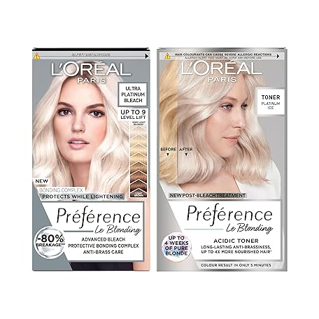 Sản phẩm L'Oréal Paris Préférence Ultra Platinum Bleach & Le Blonding Acidic Toner, Ultimate Cool Blonde Routine, Up to 9 Levels Lift, Long Lasting Anti-Brassiness Toner, No Ammonia, Cool Blonde Look Kit đang được bán với giá ưu đãi là $30.5527 tại nước Anh.