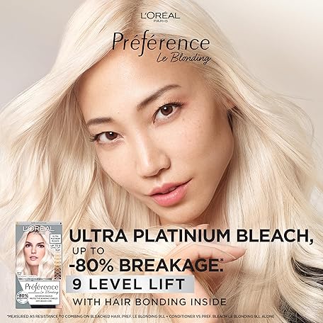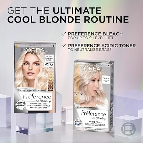 Thông tin sản phẩm L'Oréal Paris Préférence Ultra Platinum Bleach & Le Blonding Acidic Toner, Ultimate Cool Blonde Routine, Up to 9 Levels Lift, Long Lasting Anti-Brassiness Toner, No Ammonia, Cool Blonde Look Kit