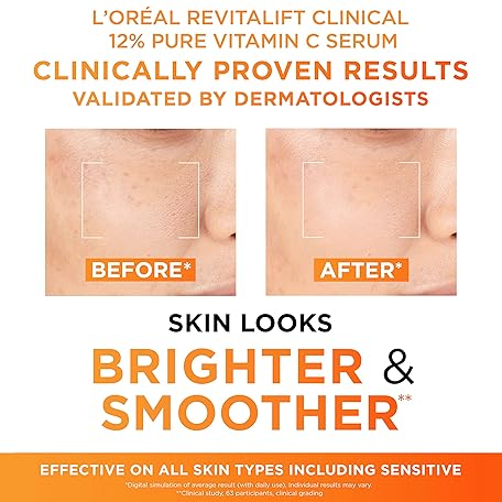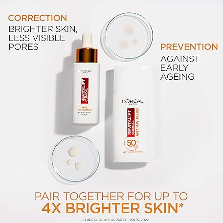 Thông tin sản phẩm L'Oréal Paris Revitalift Clinical 12% Pure Vitamin C Serum (30ml) & SPF 50 UV Fluid (50ml) Duo for Face, Antioxidant Protection, Brighter Smoother Skin, UV Protection