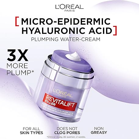 Thông tin sản phẩm L’Oréal Paris Revitalift Filler Replumping Water Cream, Reduce Fine Lines Appearance, Replumps, Hydrates and Locks in Moisture, Enriched with Micro, Micro-Epidermic Hyaluronic Acid, 50ml