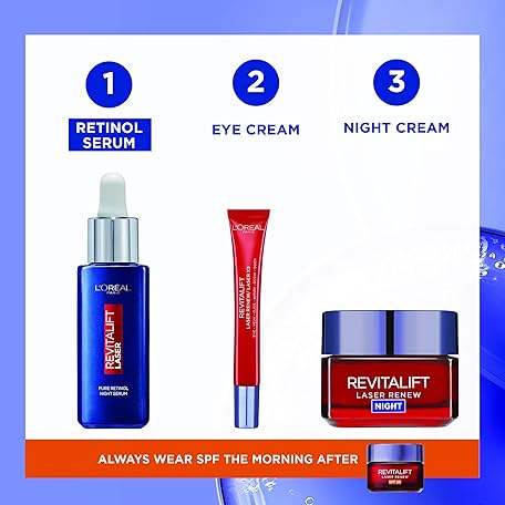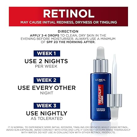 Thông tin sản phẩm L'Oreal Paris Revitalift Laser Pure Retinol Serum, Anti-Wrinkle, Anti-Fine line, Retinol Night Serum For Face, Visible Results, Validated by Dermatologists, 30ml