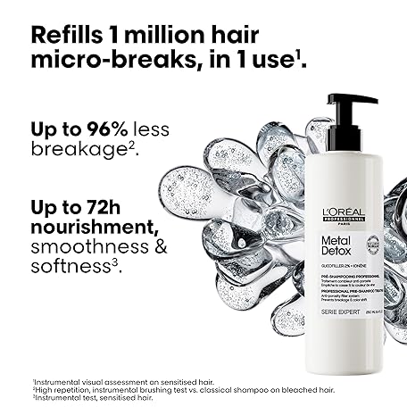 Thông tin sản phẩm L’Oréal Professionnel Metal Detox Pre-Shampoo Hair Treatment 250ml, Prevent Breakage & Colour Fade from hard water, Prevent Damaged Hair,