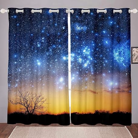 Sản phẩm Loussiesd Galaxy Window Drapes Blue Milky Way Window Curtain Panels Girls Dreamy Tree Nature Theme Window Treatments for Children Kids Boys Women Microfiber Starry Sky Grommet Top Room Decor W46*L72 đang được bán với giá ưu đãi là $61.1926 tại nước Anh.