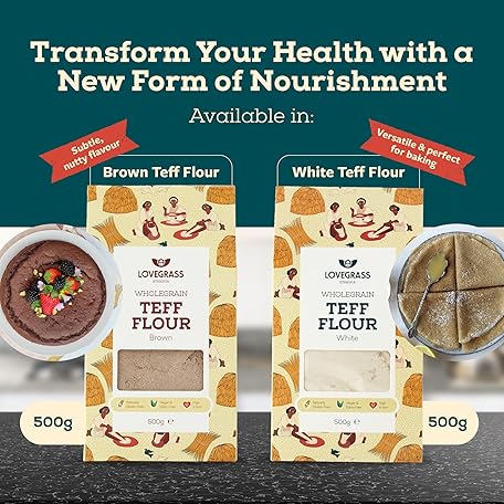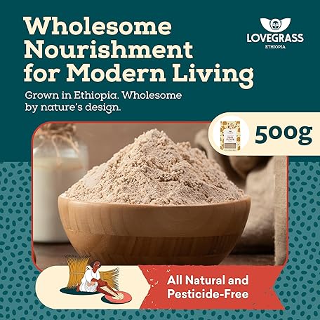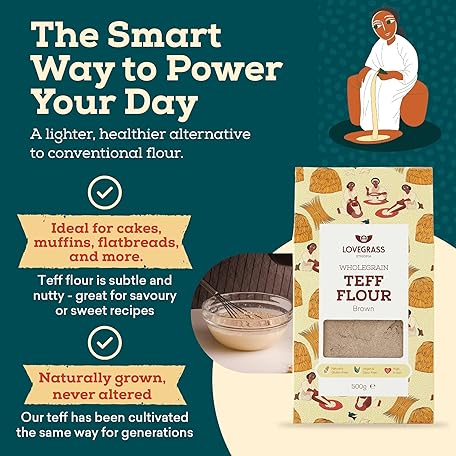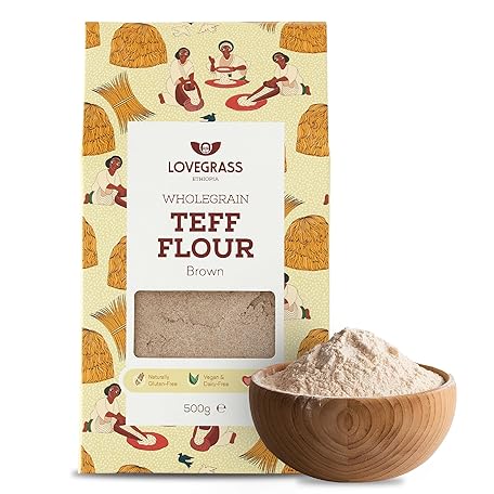 Thông tin sản phẩm Lovegrass Ethiopia Habesha Brown Teff Flour 500g | Gluten Free | Vegan, High Protein, Vitamins & Minerals | Great for Baking Including the Traditional Injera Flatbread