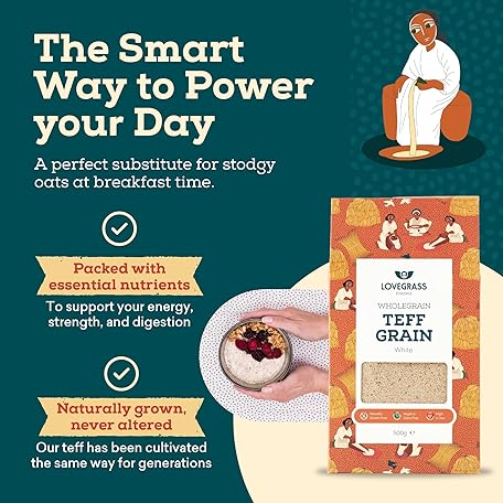 Thông tin sản phẩm Lovegrass Ethiopia Habesha White Teff Grain 500g | Gluten Free | Vegan, High Protein, Vitamins & Minerals | Great for Baking or as a Rice, Couscous or Quinoa Substitute