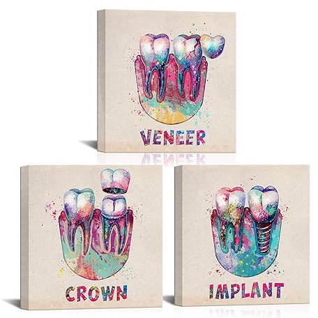 LoveHouse Tooth Canvas Wall Art, Teeth Treatment Pictures Prints, Dental Office Decor, Great Gift For Dentist Clinic 12"X12"X3 Pcs