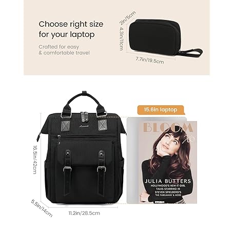 Thông tin sản phẩm LOVEVOOK Women Laptop Backpack With Electronics Organizer Bag, USB Charging Port, 15.6inch, Water-resistant Rucksack For School College University Travel Work ,Black