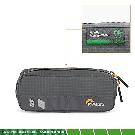 Thông tin sản phẩm Lowepro GearUp Memory Wallet 20, Compact Memory Card Organizer for CF, XQD and SD Cards, SD Case with Dual Zipper Closure, Made with Recycled Fabrics, Grey