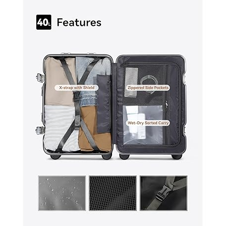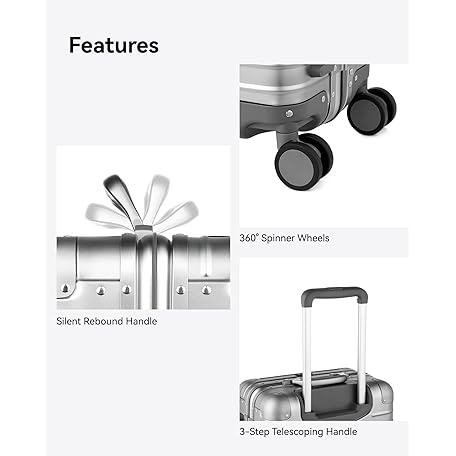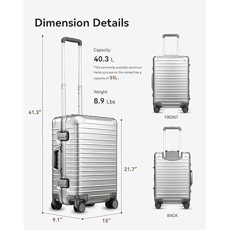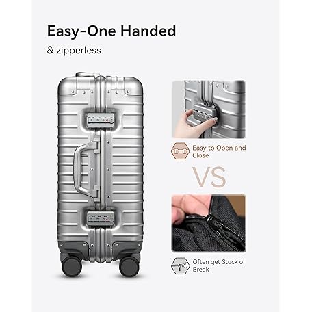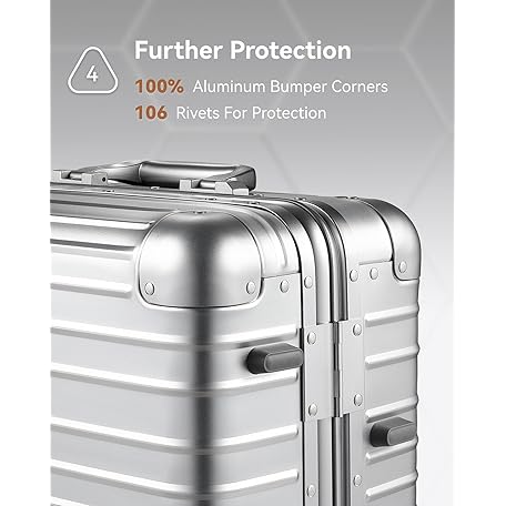 Thông tin sản phẩm Luggex All Aluminium Luggage, Aluminum Carry on Suitcase for Travel, Zipperless Luggage, Hardshell Suitcase with Spinner Wheels, TSA Combination Lock(Silver, 55 x 38 x 23 cm, 40L)