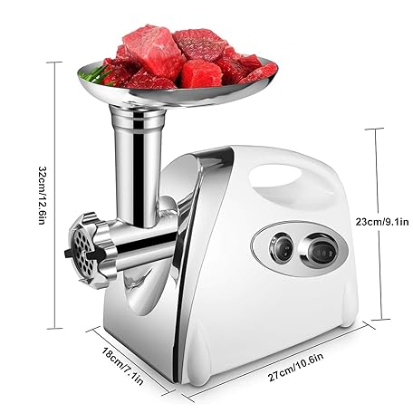 Thông tin sản phẩm LUKVCIY Electric Meat Mincer Grinder and Sausage Maker, 2800W Copper Motor, 3 Cutting Plates, Sausage & Kubbe Kit (White)