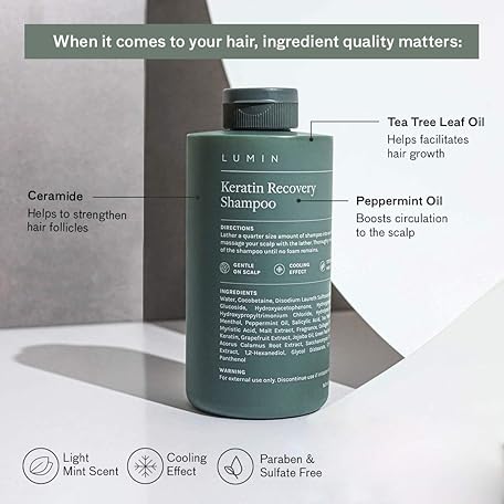 Thông tin sản phẩm Lumin - Men’s Keratin Recovery Shampoo (2-Pack): Rehydrate Dry, Damaged Hair and Boost Hair Growth | Formulated with Tea Tree Leaf Oil for a Gentle, Cooling Cleanse